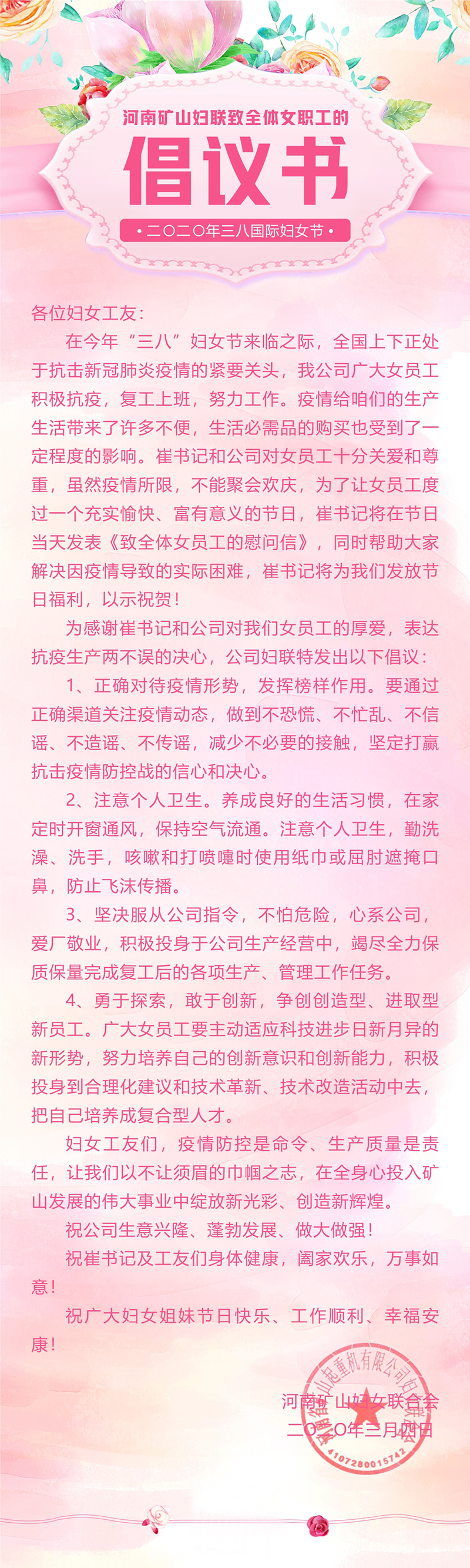 河南礦山婦聯致全體女職工的倡議書