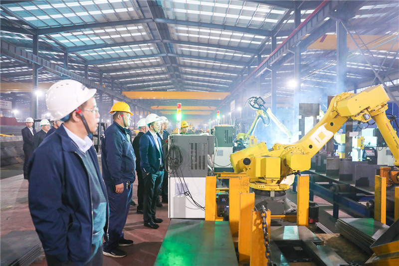 ▲韓珍堂一行考察公司智能產業園雙梁主梁智能制造生產線