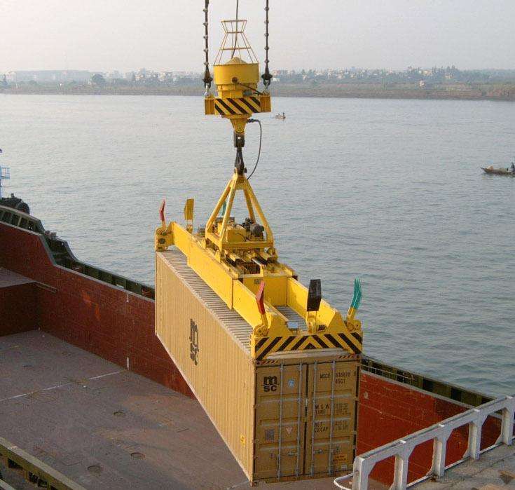 適應不同規(guī)格,變換時間20秒,自重大約10噸,使用最多。伸縮吊具有只伸縮不旋轉的,為進出箱方便,還有伸縮帶旋轉的。