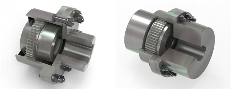 ▲其它直齒聯軸器(左)、河南礦山標配鼓形齒式聯軸器(右)