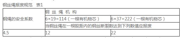 如果電動葫蘆上的起重鋼繩在每一股距內鋼絲的斷裂數目已達到表1的規定,鋼繩應立即報廢并換上新繩。如果鋼絲的斷裂數目未達到表1的規定,原則上允許繼續使用,但必須隨時嚴密檢查,以保安全。