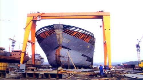 造船門式起重機(jī)是工作在造船廠的船塢、船臺(tái)或平臺(tái)上進(jìn)行船體分段吊裝及翻身作業(yè)的專用起重設(shè)備。