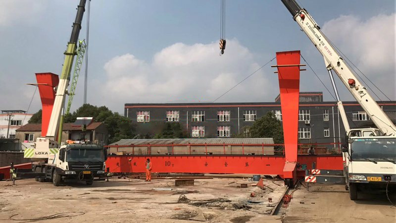 單主梁吊鉤門(mén)式起重機(jī)安裝現(xiàn)場(chǎng):